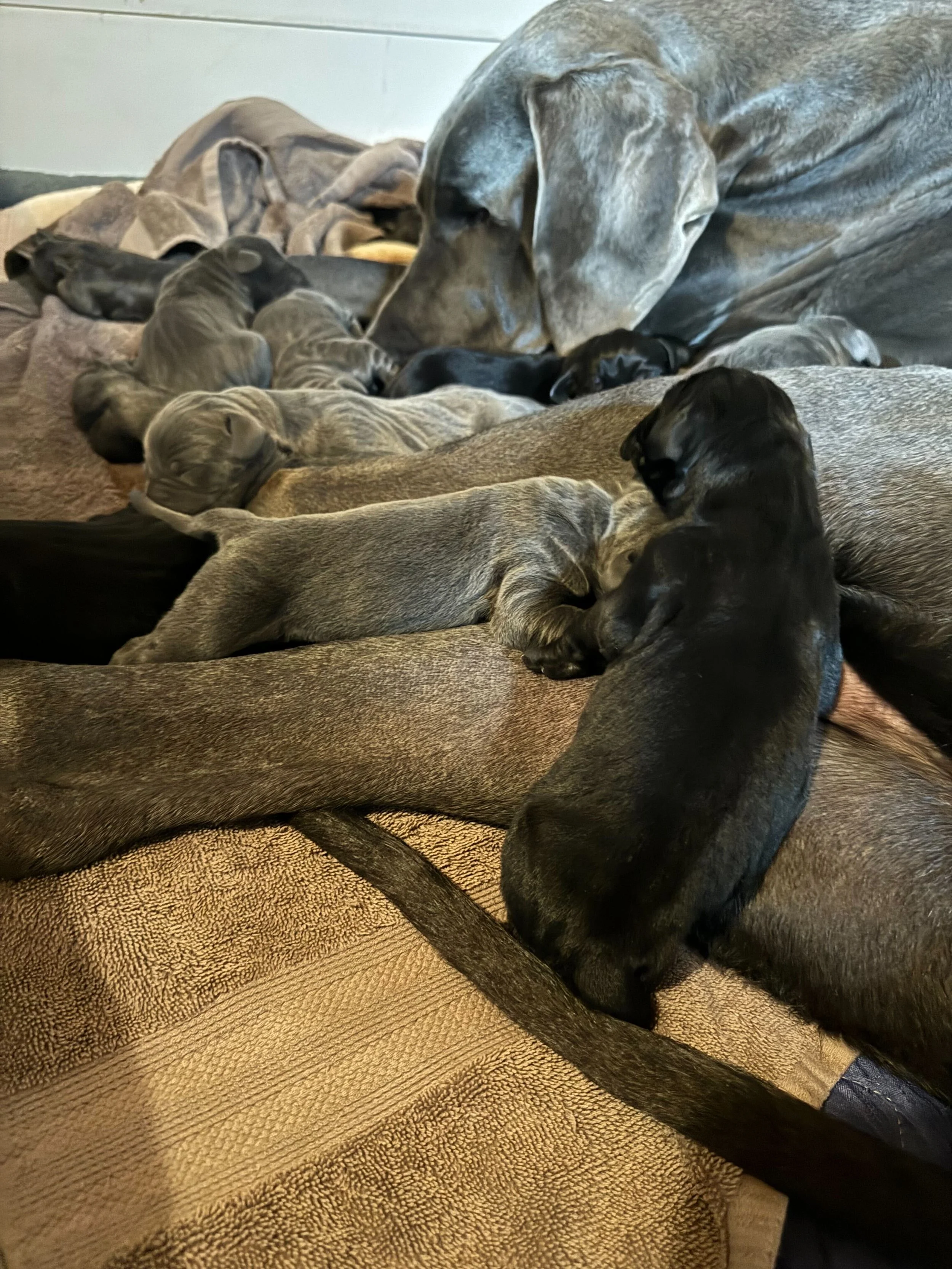 We are proud to announce that Island Great Danes is the FIRST breeder of Great Danes on Cape Breton Island! This historic milestone is made even more special by the arrival of our very first litter of magnificent Great Dane puppies. On Sunday, November 24th, we welcomed 11 incredible puppies into the world: four big, handsome boys and seven stunning girls.